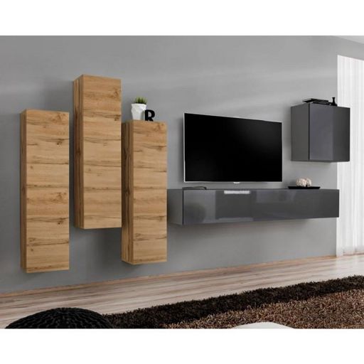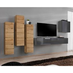 Meuble TV Mural Design Switch III 330cm Naturel & Gris