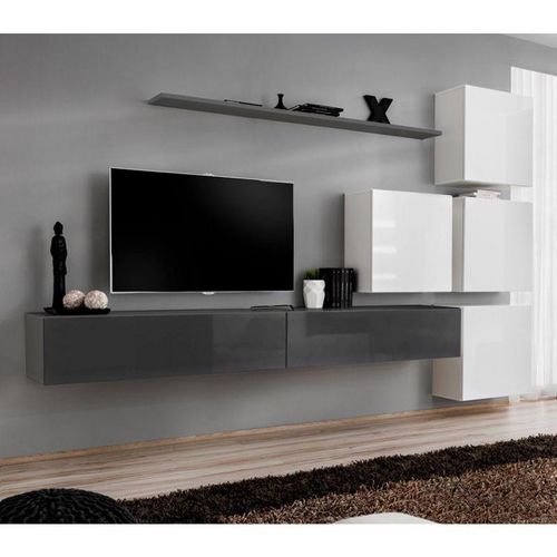 Meuble TV Mural Design Switch IX 310cm Gris & Blanc