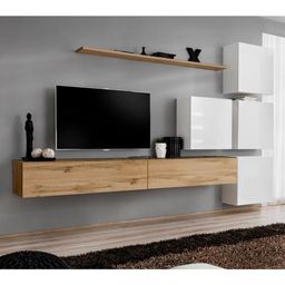 Meuble TV Mural Design Switch IX 310cm Naturel & Blanc