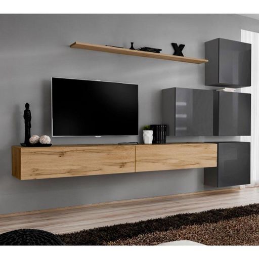 Meuble TV Mural Design Switch IX 310cm Naturel & Gris
