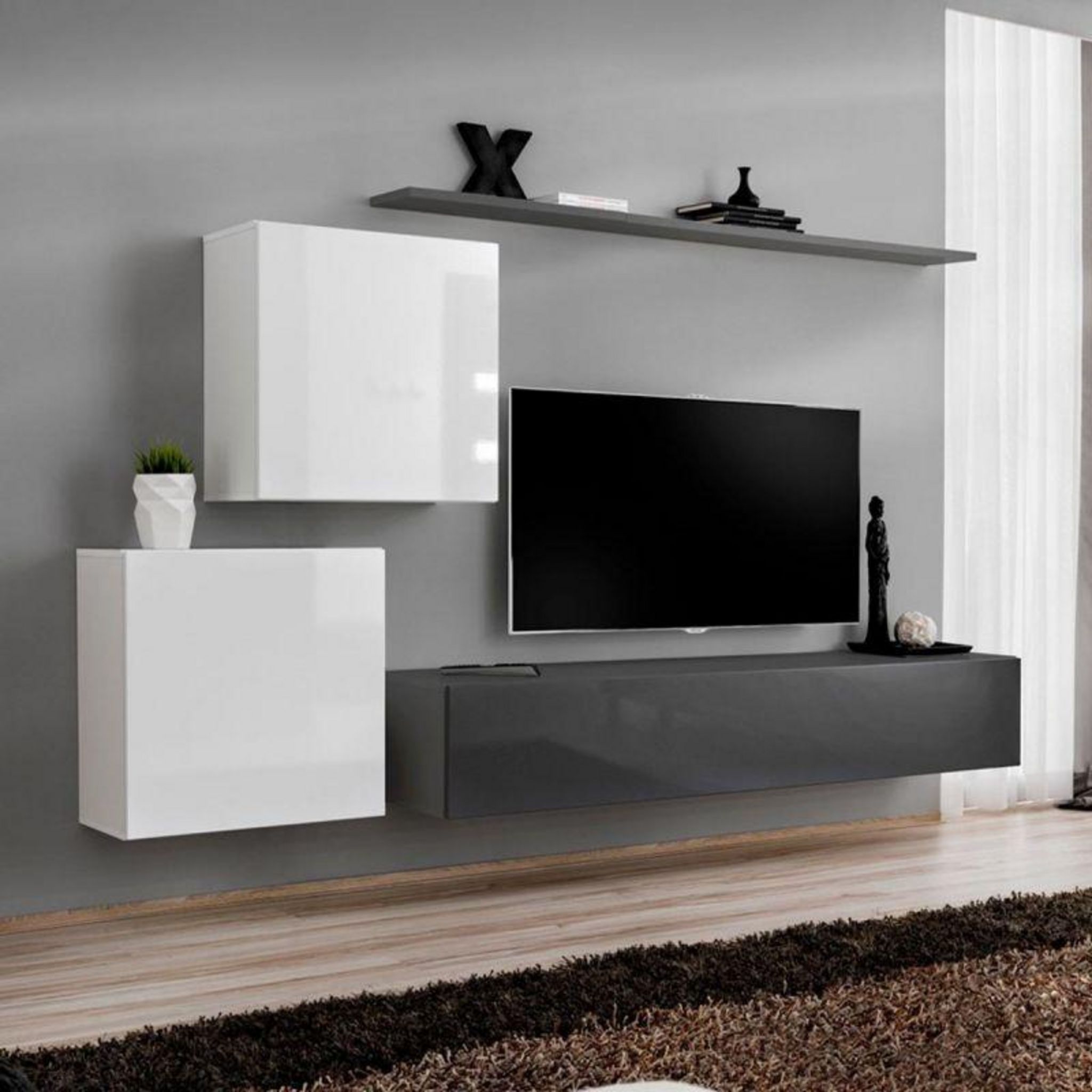 Meuble TV Mural Design Switch V 250cm Blanc & Gris