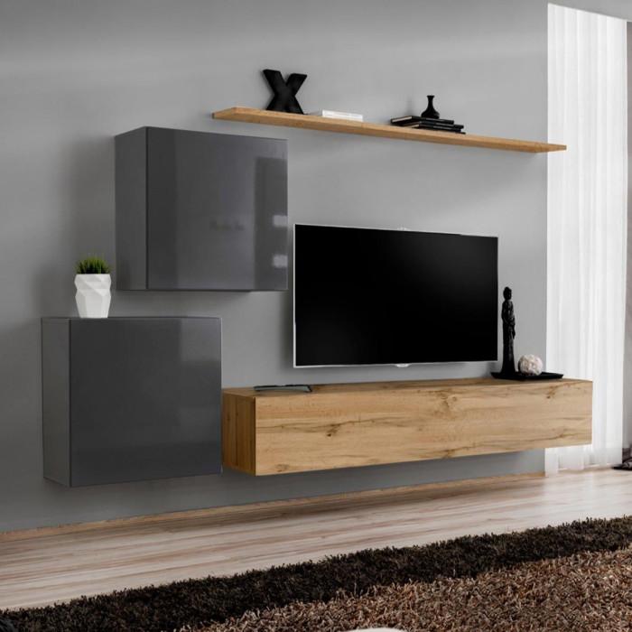 Meuble TV Mural Design Switch V 250cm Gris & Naturel