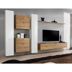 Meuble TV Mural Design Switch VI 330cm Blanc & Naturel