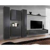 Informations Techniques : Dimensions : Banc TV : L. 180 x l. 40 x H. 30 cm Vitrine murale : L. 30 x l. 30 x H. 180 cm Bloc mural : L. 60 x l. 30 x H. 60 cm Étagère : L. 180 x l. 20 x H. 2,2 cm Dimension totale : L. 330 x l. 40 x H. 180 cm Matières : Structure : Panneaux de particules stratifiés Faça