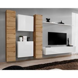 Meuble TV Mural Design Switch VI 330cm Naturel & Blanc