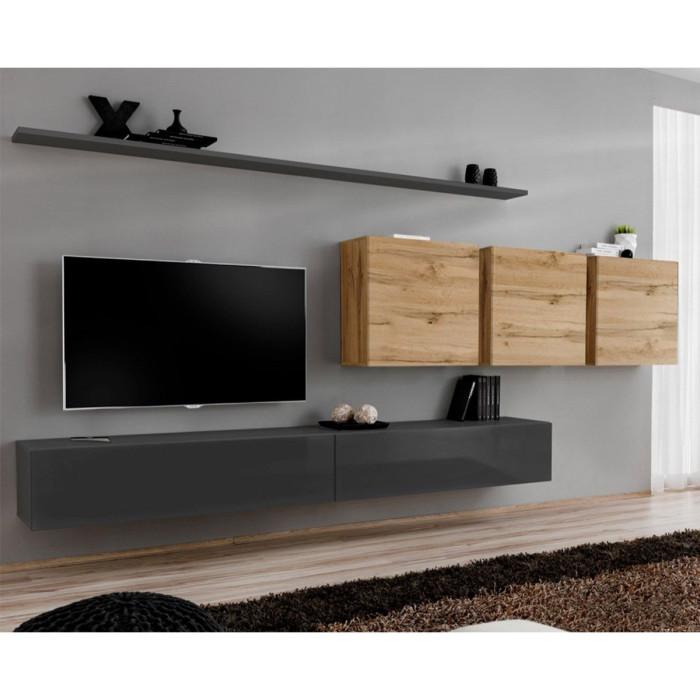Meuble TV Mural Design Switch VII 340cm Gris & Naturel