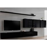 Informations Techniques : Dimensions : Banc TV : L. 120 x l. 40 x H. 30 cm Bloc mural : L. 60 x l. 30 x H. 60 cm Étagère : L. 120 x l. 20 x H. 2,2 cm Dimension totale : L. 340 x l. 40 x H. 150 cm Matières : Structure : Panneaux de particules stratifiés Façades : Panneaux de fibres à densité moyenne
