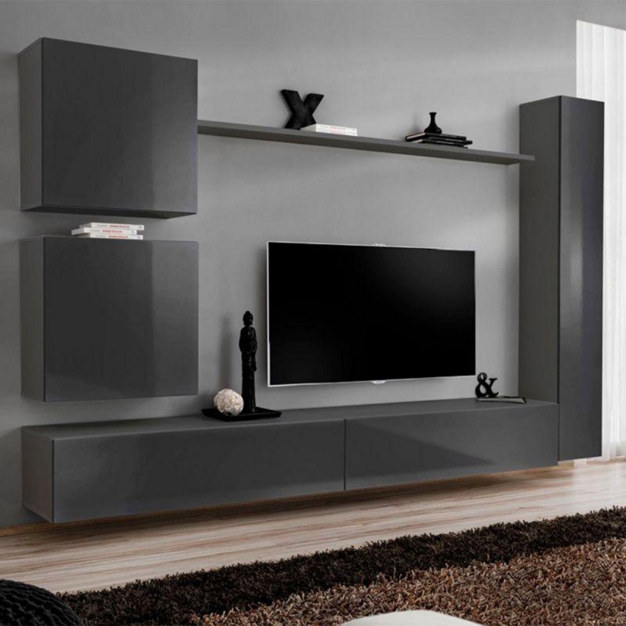 Meuble TV Mural Design Switch VIII 280cm Gris