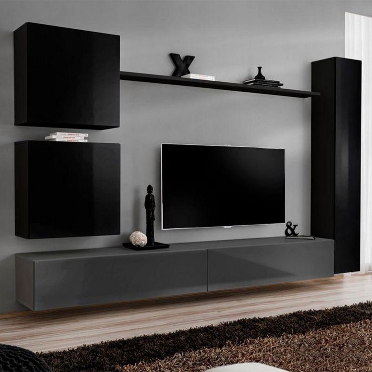 Meuble TV Mural Design Switch VIII 280cm Noir & Gris