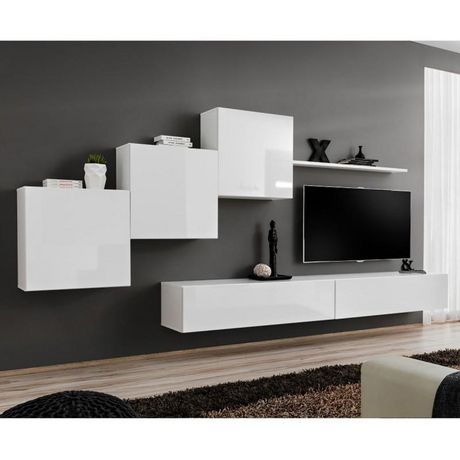 Informations Techniques : Dimensions : Banc TV : L. 120 x l. 40 x H. 30 cm Bloc mural : L. 60 x l. 30 x H. 60 cm Étagère : L. 120 x l. 20 x H. 2,2 cm Dimension totale : L. 330 x l. 40 x H. 150 cm Matières : Structure : Panneaux de particules stratifiés Façades : Panneaux de fibres à densité moyenne