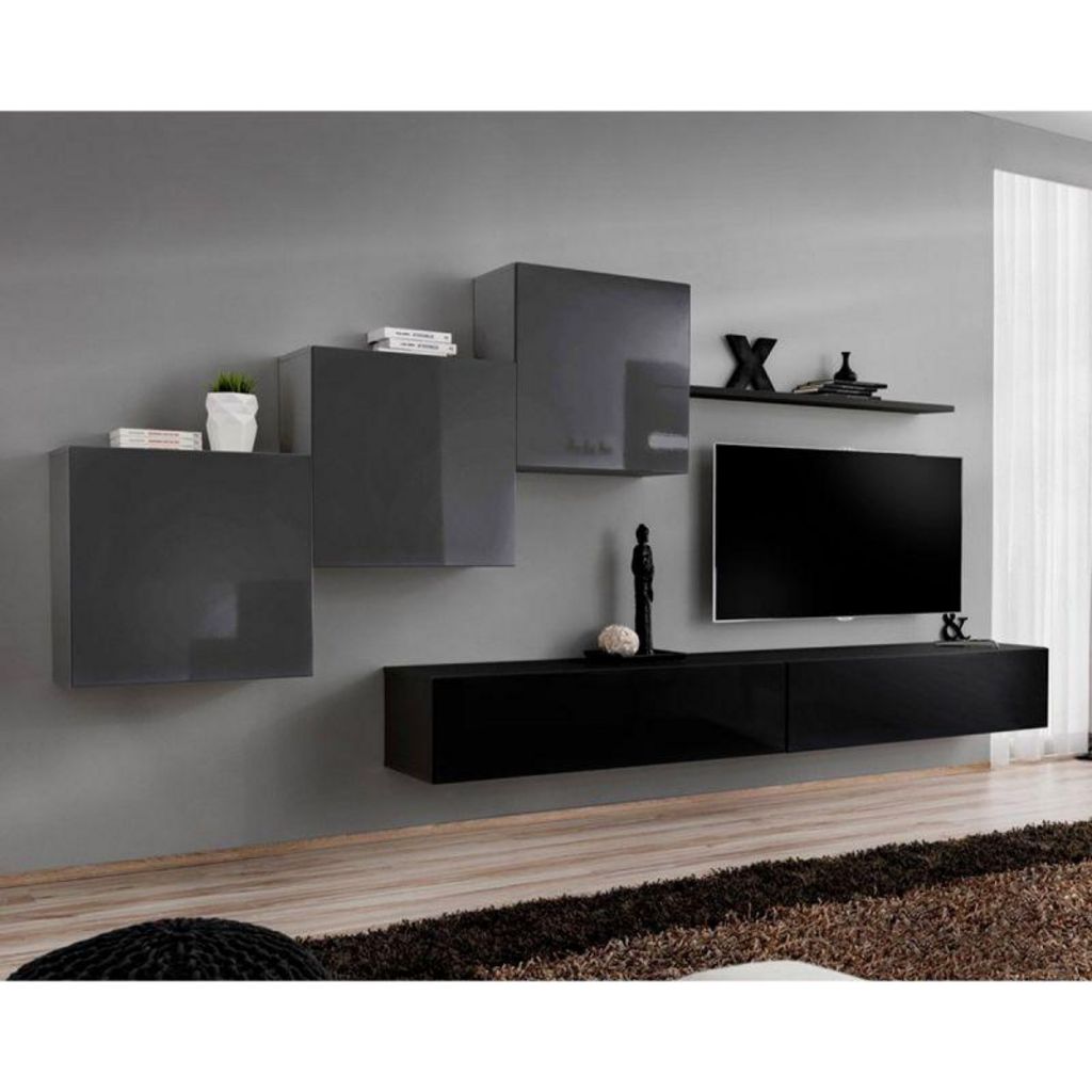 Meuble TV Mural Design Switch X 330cm Gris & Noir