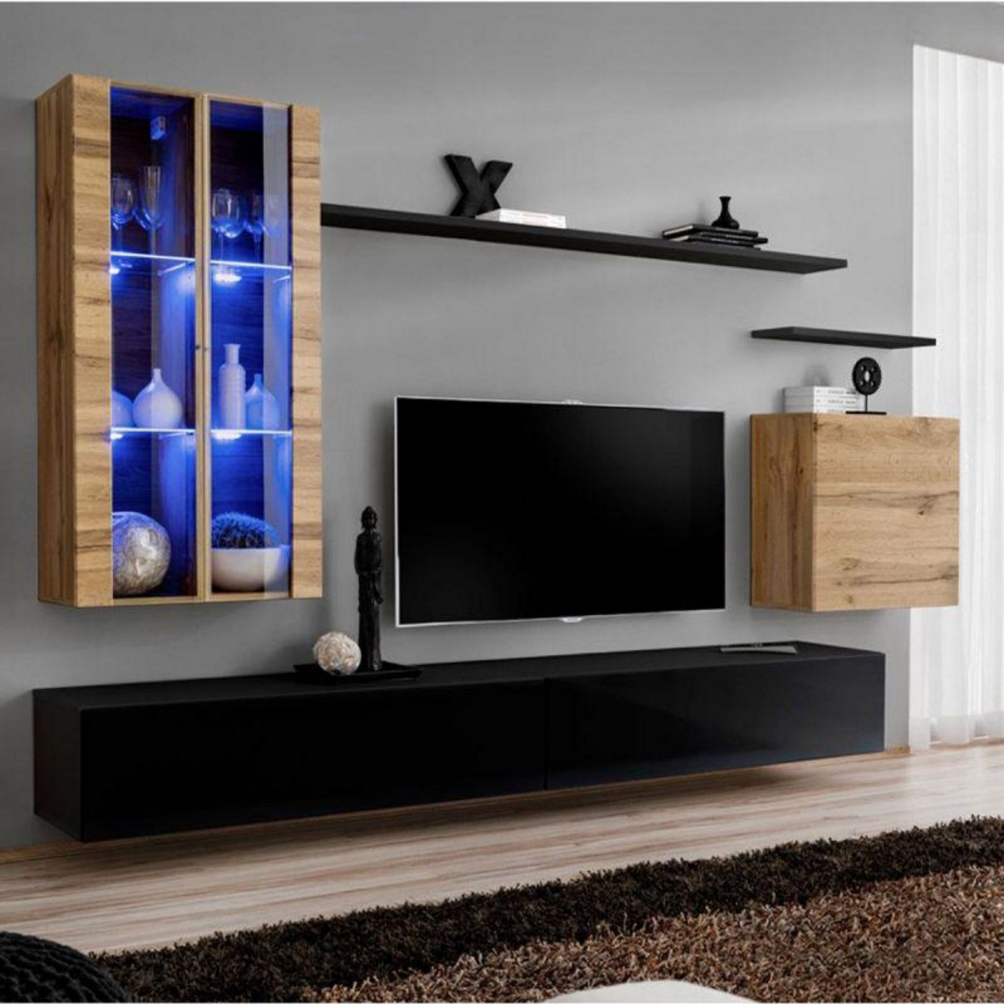Meuble TV Mural Design Switch XII 270cm Naturel & Noir