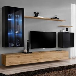 Meuble TV Mural Design Switch XII 270cm Noir & Naturel
