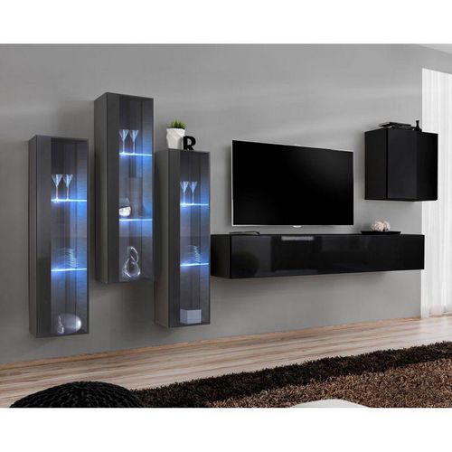 Meuble TV Mural Design Switch XIII 330cm Gris & Noir