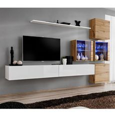 Meuble TV Mural Design Switch XIX 310cm Blanc & Naturel