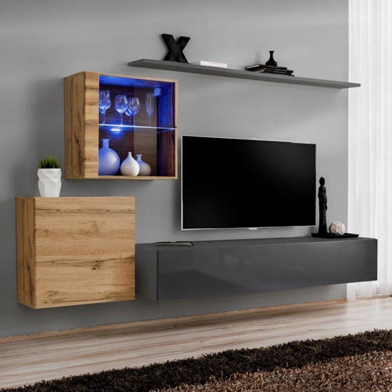 Meuble TV Mural Design Switch XV 260cm Gris & Naturel