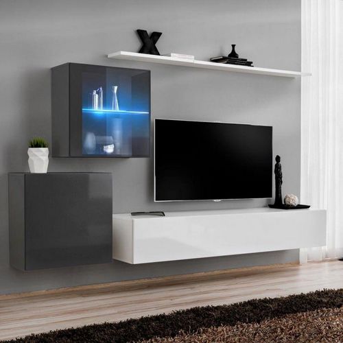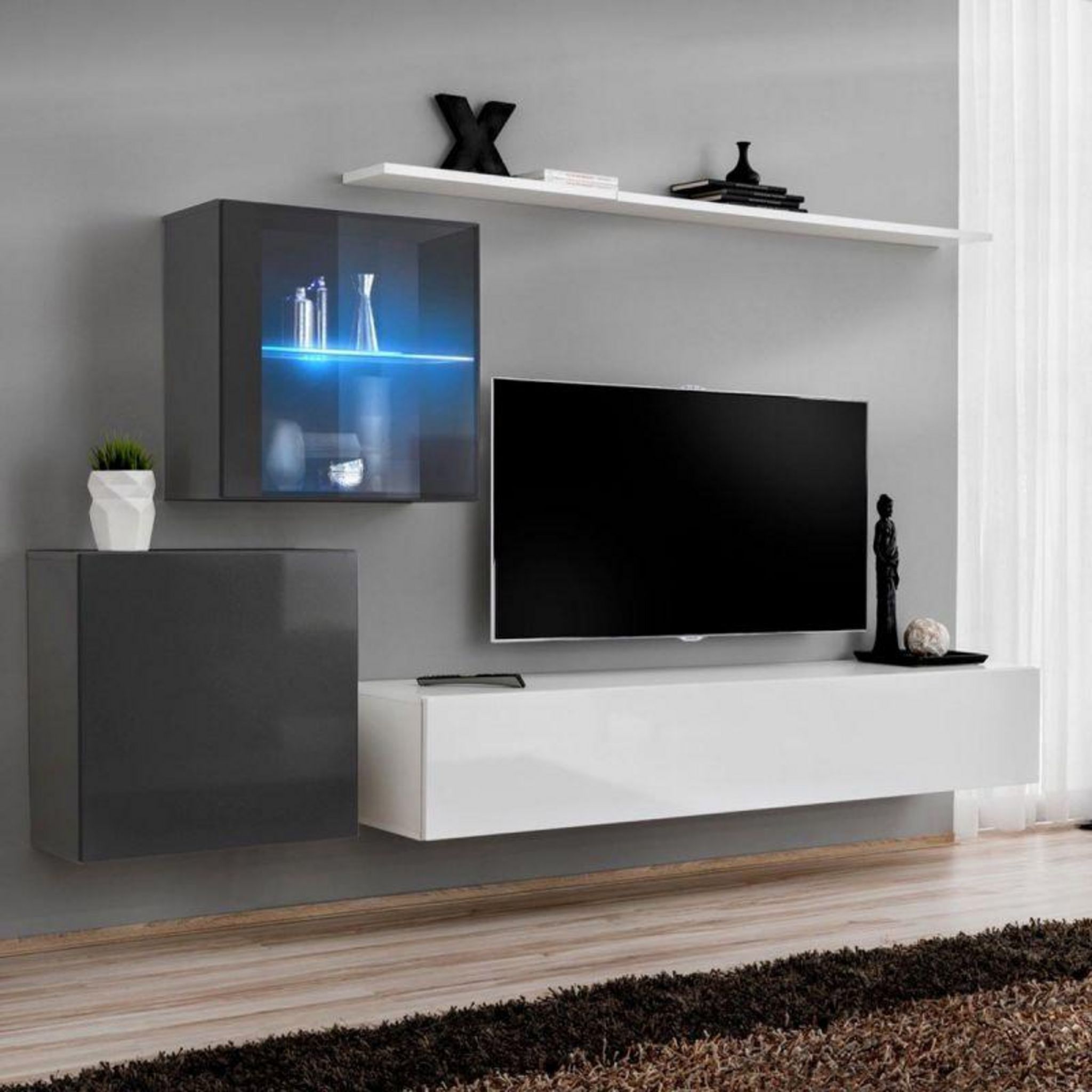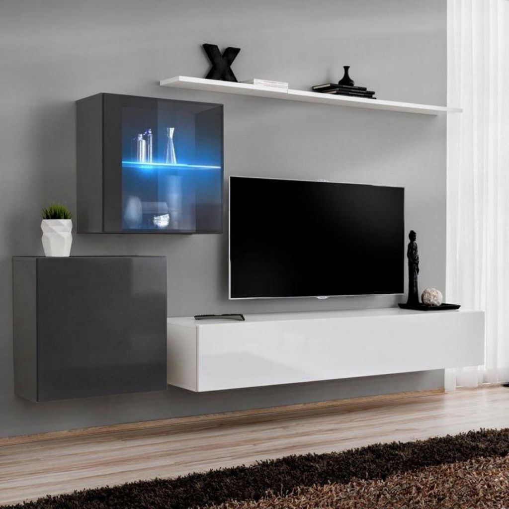 Meuble TV Mural Design Switch XV 260cm Blanc & Gris