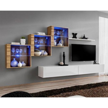 Meuble TV Mural Design Switch XX 330cm Blanc & Naturel