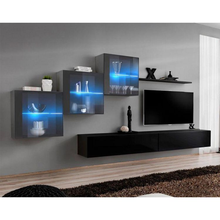 Meuble TV Mural Design Switch XX 330cm Noir & Gris