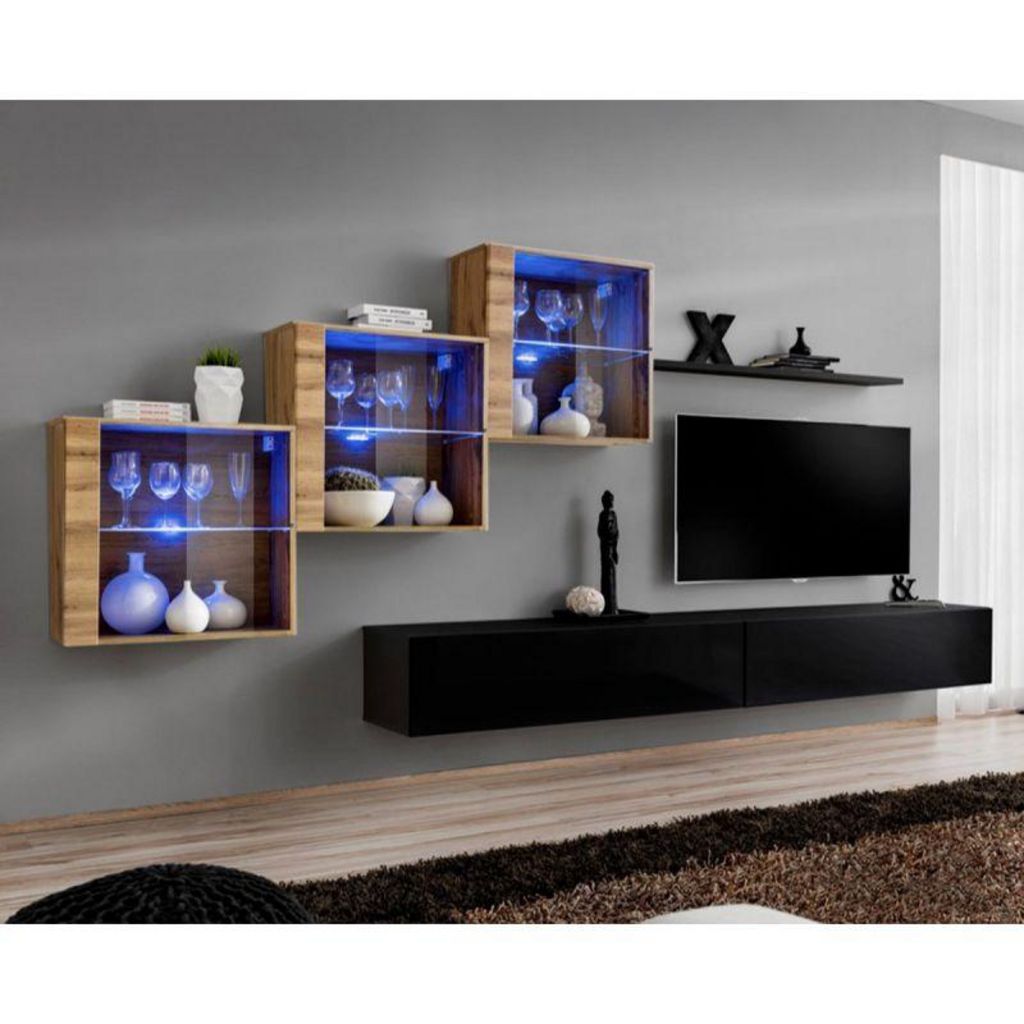 Meuble TV Mural Design Switch XX 330cm Noir & Naturel