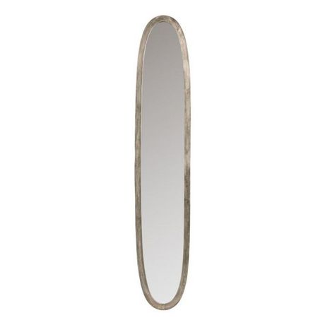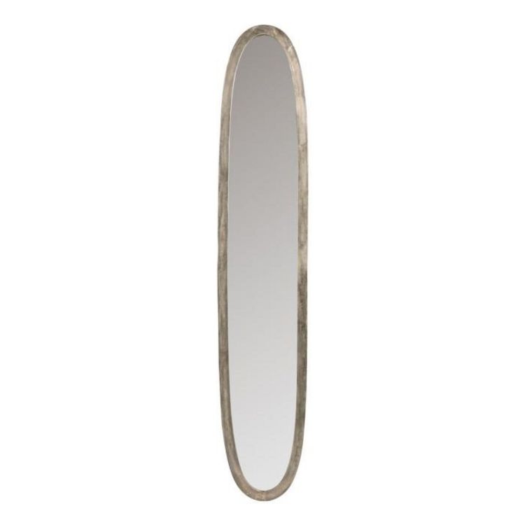 Informations Techniques : Dimensions : L. 33,5 x l. 2,5 x H. 179,5 cm Matières : 50% Aluminium & 50% Verre Spécificités : Déco & Utile Miroir long Style antique Forme ovale Poids : 9,88 kg Couleur : Gris