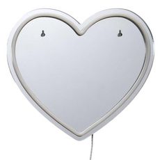 Informations Techniques : Dimensions : L. 30 x l. 2 x H. 27 cm Matières : Plastique & Caoutchouc Spécificités : Rétro & Déco Miroir LED effet néon Design cœur Alimentation USB Poids : 0,15 kg Couleur : Rouge