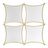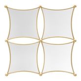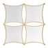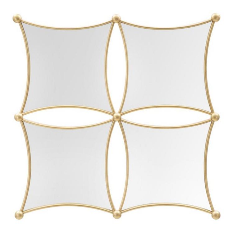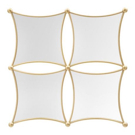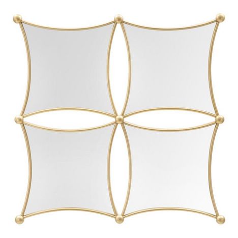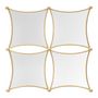 Informations Techniques : Dimensions : L. 68 x l. 3,5 x H. 68 cm Miroirs : L. 24,5 x H 24,5 cm Matières : Métal, Verre & MDF Spécificités : Pratique & Design Composition mural Avec 4 miroirs carrés Poids : 4,2 kg Couleur : Or
