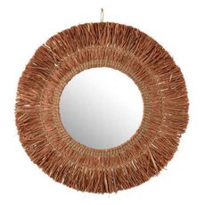 Miroir Mural Déco en Raphia Saffron 65cm Marron