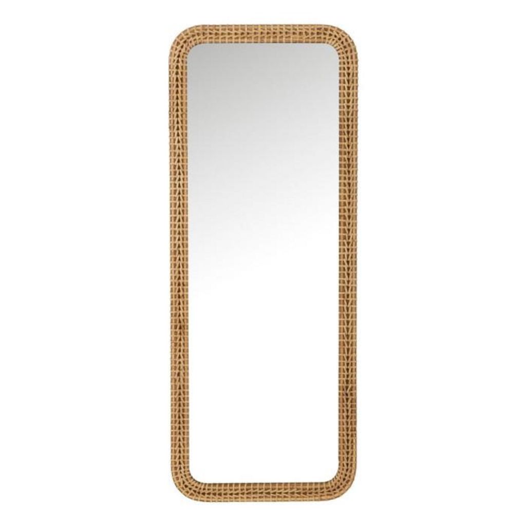 Informations Techniques : Dimensions : L. 48 x l. 3 x H. 122,5 cm Matières : Rotin, Verre, MDF & Bois (Sapin) Spécificités : Déco & Utile Miroir rectangulaire Cadre style tressage À suspendre ou à poser Poids : 7,1 kg Couleur : Naturel