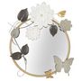 Informations Techniques : Dimensions : L. 74,9 x l. 7 x H. 66 cm Matières : Métal, Verre & MDF Spécificités : Pratique & Design Miroir mural rond Ornements fleurs et papillons Poids : 4,36 kg Couleur : Multicolore