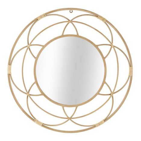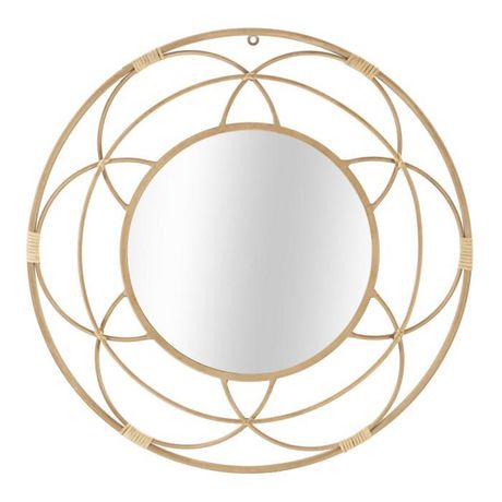 Informations Techniques : Dimensions : L. 60 x l. 3 x H. 60 cm Miroir : D. 33 cm Matières : Rotin, Métal & Verre Spécificités : Pratique & Design Miroir mural rond Cadre en rotin Poids : 1,35 kg Couleur : Naturel