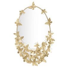 Informations Techniques : Dimensions : L. 59 x l. 3 x H. 89,5 cm Miroir : L. 46 x H. 78 cm Matières : Métal & Verre Spécificités : Pratique & Design Miroir mural ovale Ornement papillon Poids : 4,52 kg Couleur : Or