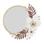 Informations Techniques : Dimensions : L. 74,9 x l. 7,6 x H. 72,4 cm Miroir : D. 56,5 cm Matières : Métal, Verre & MDF Spécificités : Pratique & Design Miroir mural rond Ornements feuilles et fleurs Poids : 4,6 kg Couleur : Multicolore