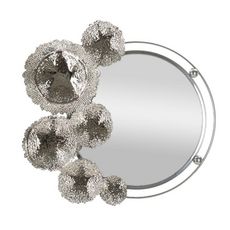 Informations Techniques : Dimensions : L. 85 x l. 7 x H. 80,6 cm Miroir : D. 55 cm Matières : Métal & Verre Spécificités : Utile & Design Miroir mural rond Ornements fleurs Poids : 4,54 kg Couleur : Argent