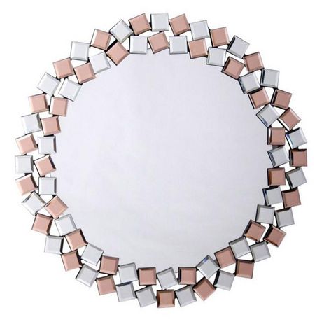 Miroir Mural Design Mosaic 80cm Argent & Rose