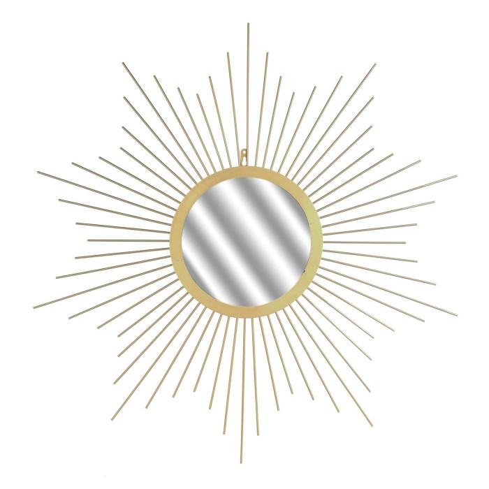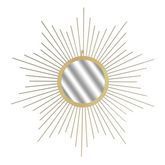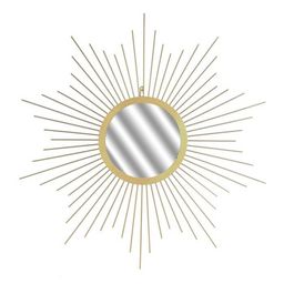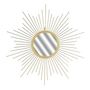 Informations Techniques : Dimensions : D. 66 x H. 1,5 cm Matières : Verre & Métal Spécificités : Pratique & Utile Miroir Mural Forme Ronde Design Soleil Poids : 0,929 kg Couleur : Or