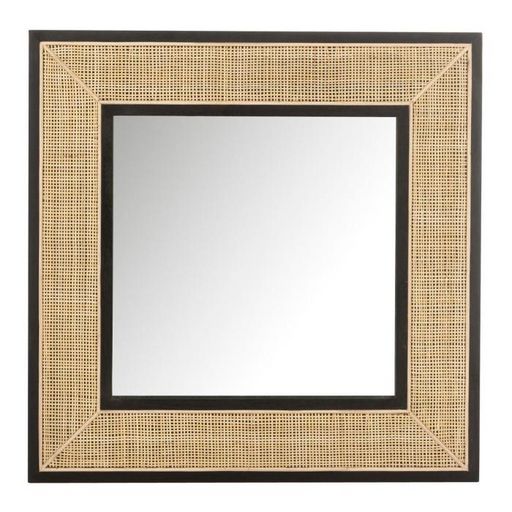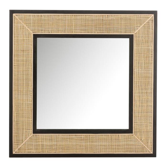 Informations Techniques : Dimensions : L. 80,5 x l. 3,5 x H. 80,5 cm Matières : Verre, Rotin & Bois (Bayur & Mindi) Spécificités : Utile & Élégant Miroir mural carré Design bicolore Poids : 9,81 kg Couleur : Naturel & Noir