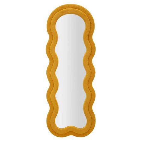 Informations Techniques : Dimensions : L. 40 x l. 4 x H. 160 cm Miroir : L. 39 x H. 137 cm Matières : MDF, Polyester & Verre Spécificités : Utile & Tendance Miroir mural design Cadre recouvert de tissu bouclé Bords ondulés Poids : 13 kg Couleur : Moutarde