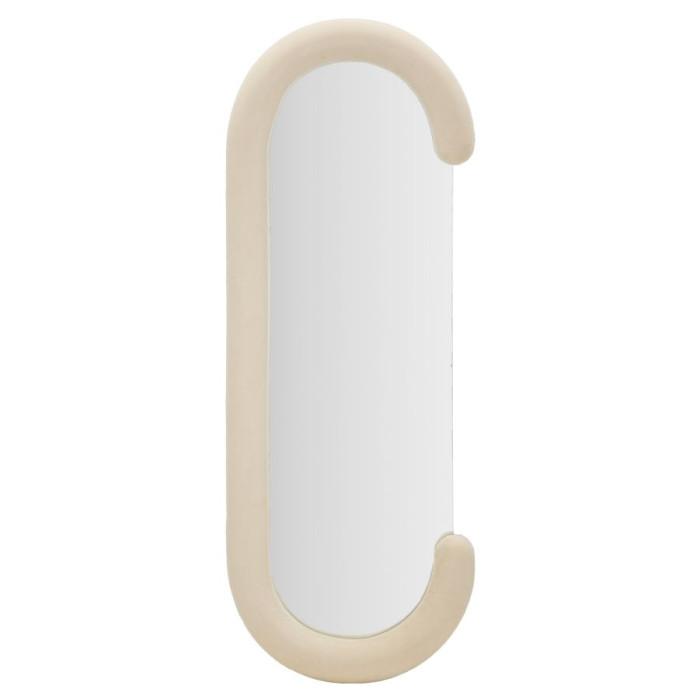 Informations Techniques : Dimensions : L. 60 x l. 7 x H. 160 cm Miroir : L. 45 x H. 140 cm Matières : MDF, Polyester & Verre Spécificités : Utile & Tendance Miroir mural ovale Cadre recouvert de velours En forme de C Poids : 11,5 kg Couleur : Crème