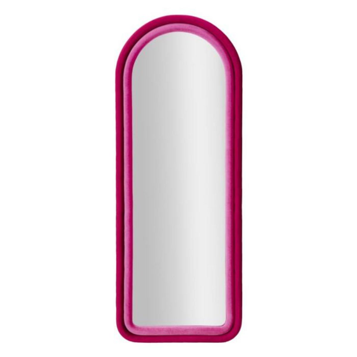 Informations Techniques : Dimensions : L. 60 x l. 4 x H. 160 cm Miroir : L. 45 x H. 145 cm Matières : MDF, Polyester & Verre Spécificités : Utile & Tendance Miroir mural design Cadre recouvert de velours Bord supérieur arrondi Poids : 12 kg Couleur : Fuchsia