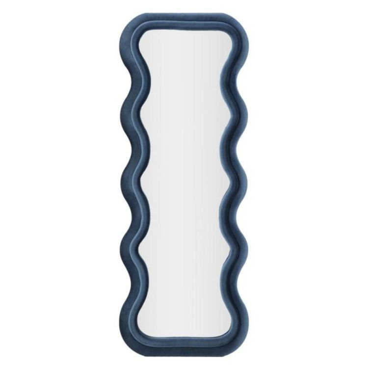 Informations Techniques : Dimensions : L. 60 x l. 6 x H. 160 cm Miroir : L. 42 x H. 144 cm Matières : MDF, Polyester & Verre Spécificités : Utile & Tendance Miroir mural design Cadre recouverts de velours Bords ondulés Poids : 13 kg Couleur : Bleu