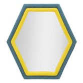 Informations Techniques : Dimensions : L. 75 x l. 4 x H. 80 cm Miroir : L. 58 x H. 65 cm Matières : MDF, Polyester & Verre Spécificités : Utile & Tendance Miroir mural hexagonal Cadre recouvert de velours bicolore Poids : 5,5 kg Couleur : Bleu & Jaune