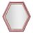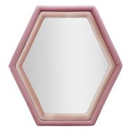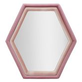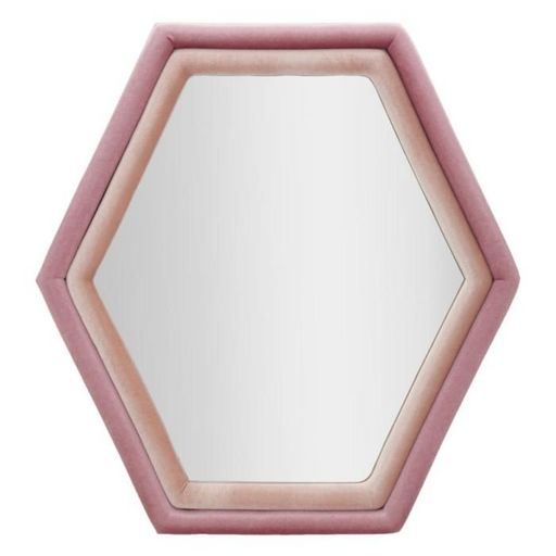 Informations Techniques : Dimensions : L. 75 x l. 4 x H. 80 cm Miroir : L. 58 x H. 65 cm Matières : MDF, Polyester & Verre Spécificités : Utile & Tendance Miroir mural hexagonal Cadre recouvert de velours bicolore Poids : 5,5 kg Couleur : Rose