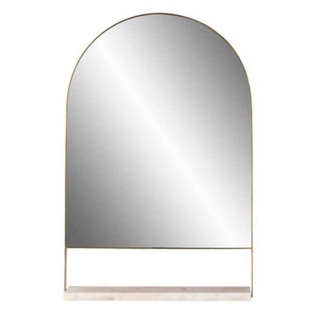 Informations Techniques : Dimensions : L. 10 x l. 43,5 x H. 69 cm Matières : Cadre : Métal Étagère : Marbre Miroir : Verre Spécificités : Pratique & Utile Miroir Mural Étagère incluse Entretien & Fabrication : Type de Fabrication : Fait Main Poids : 8,3 kg Couleur : Blanc