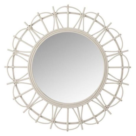 Informations Techniques : Dimensions : L. 60 x l. 3 x H. 60 cm Matières : Bambou & Verre Spécificités : Déco & Moderne Miroir design Forme Ronde Poids : 1,58 kg Couleur : Gris Clair