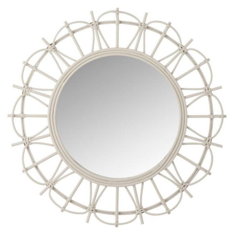 Miroir Mural Rond en Bambou Teo 60cm Gris Clair