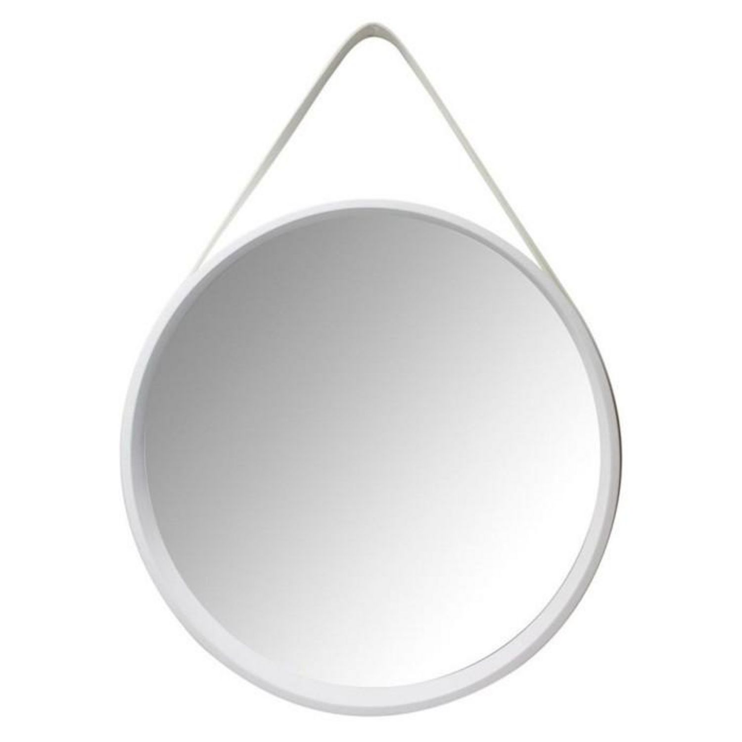 Informations Techniques : Dimensions : D. 49,5 cm Épaisseur du miroir : Entre 3,5 à 7,5 cm Matières : MDF & Polyuréthane Spécificités : Moderne & Design Miroir Mural Déco Avec Sangle Suspendue Forme Ronde Poids : 2700 g Couleur : Blanc