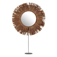 Miroir sur Pied en Raphia Saffron 50cm Marron
