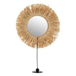 Informations Techniques : Dimensions : L. 41 x l. 9 x H. 51 cm Matières : Rotin & Raphia Spécificités : Design & Moderne Miroir sur Pied Forme Ronde Poids : 0,42 kg Couleur : Naturel