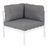 Informations Techniques : Dimensions : L. 74 x l. 74 x H. 65 cm Matière : Aluminium Spécificités : Confortable & Pratique Module canapé d'angle de jardin Coussins inclus Poids max supporté : 150 kg Poids : 8,6 kg Couleur : Gris & Blanc